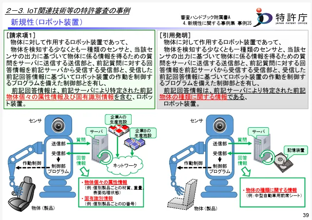 引用:特許庁調整課審査基準室 IoT関連技術の審査基準等について~IoT、AI、3Dプリンティング技術等に対する審査基準・審査ハンドブックの適用について(https://www.jpo.go.jp/system/laws/rule/guideline/patent/document/iot_shinsa/all.pdf